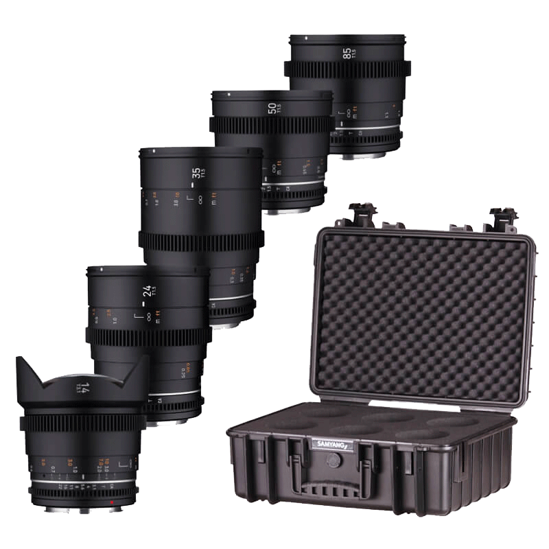 Full Samyang cine prime lens kit, all up to T/1.5.